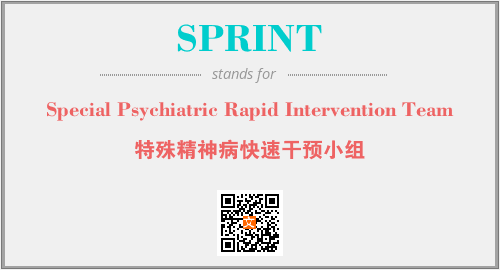上述内容是“Special Psychiatric Rapid Intervention Team”作为“SPRINT”的缩写,解释为“特殊精神病快速干预小组”时的信息,以及英文缩略词SPRINT所代表的英文单词,其对应的中文拼音、详细解释以及在英文中的流行度和相关分类、应用领域及应用示例等。
