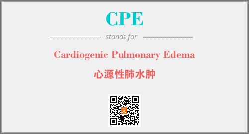 上述内容是“Cardiogenic Pulmonary Edema”作为“CPE”的缩写,解释为“心源性肺水肿”时的信息,以及英文缩略词CPE所代表的英文单词,其对应的中文拼音、详细解释以及在英文中的流行度和相关分类、应用领域及应用示例等。