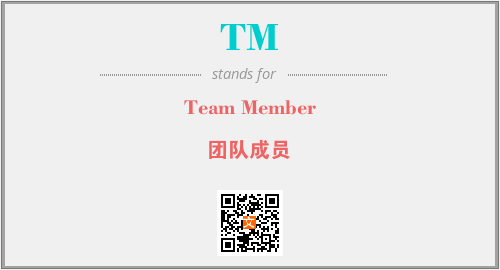 上述内容是“Team Member”作为“TM”的缩写,解释为“团队成员”时的信息,以及英文缩略词TM所代表的英文单词,其对应的中文拼音、详细解释以及在英文中的流行度和相关分类、应用领域及应用示例等。