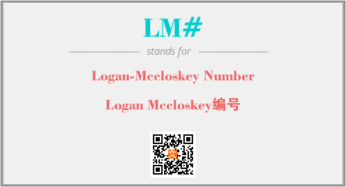 上述内容是“Logan-Mccloskey Number”作为“LM#”的缩写,解释为“Logan Mccloskey编号”时的信息,以及英文缩略词LM#所代表的英文单词,其对应的中文拼音、详细解释以及在英文中的流行度和相关分类、应用领域及应用示例等。