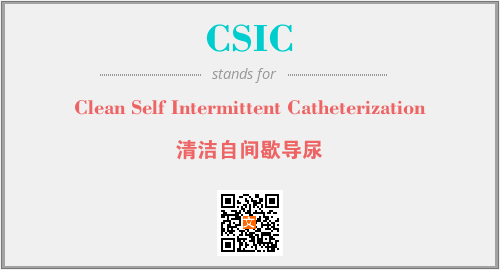 英文缩略词“CSIC”经常作为“Clean Self Intermittent Catheterization”的英文缩写来使用,中文表示:“清洁自间歇导尿”。本文将详细介绍英文缩写词CSIC所代表英文单词,其对应的中文拼音、详细解释以及在英语中的流行度。此外,还有关于缩略词CSIC的分类、应用领域及相关应用示例等。