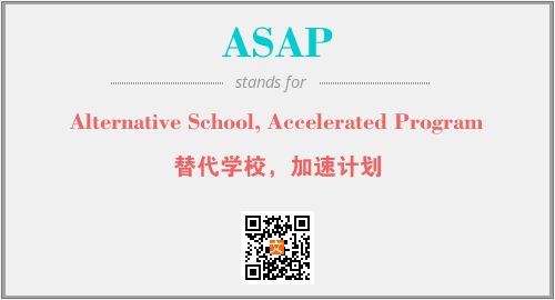 英文缩略词“ASAP”经常作为“Alternative School, Accelerated Program”的英文缩写来使用,中文表示:“替代学校,加速计划”。本文将详细介绍英文缩写词ASAP所代表英文单词,其对应的中文拼音、详细解释以及在英语中的流行度。此外,还有关于缩略词ASAP的分类、应用领域及相关应用示例等。