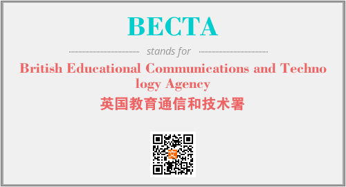 英文缩略词“BECTA”经常作为“British Educational Communications and Technology Agency”的英文缩写来使用,中文表示:“英国教育通信和技术署”。本文将详细介绍英文缩写词BECTA所代表英文单词,其对应的中文拼音、详细解释以及在英语中的流行度。此外,还有关于缩略词BECTA的分类、应用领域及相关应用示例等。