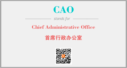 上述内容是“Chief Administrative Office”作为“CAO”的缩写,解释为“首席行政办公室”时的信息,以及英文缩略词CAO所代表的英文单词,其对应的中文拼音、详细解释以及在英文中的流行度和相关分类、应用领域及应用示例等。