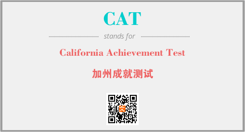 英文缩略词“CAT”经常作为“California Achievement Test”的英文缩写来使用,中文表示:“加州成就测试”。本文将详细介绍英文缩写词CAT所代表英文单词,其对应的中文拼音、详细解释以及在英语中的流行度。此外,还有关于缩略词CAT的分类、应用领域及相关应用示例等。