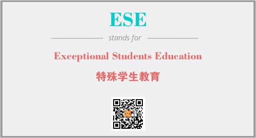 以上为Exceptional Students Education英文缩略词ESE的中文解释,以及该英文缩写在英语的流行度、分类和应用领域方面的信息。