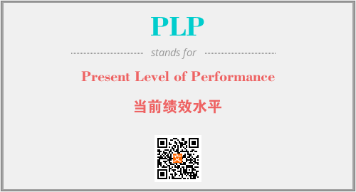 英文缩略词“PLP”经常作为“Present Level of Performance”的英文缩写来使用,中文表示:“当前绩效水平”。本文将详细介绍英文缩写词PLP所代表英文单词,其对应的中文拼音、详细解释以及在英语中的流行度。此外,还有关于缩略词PLP的分类、应用领域及相关应用示例等。