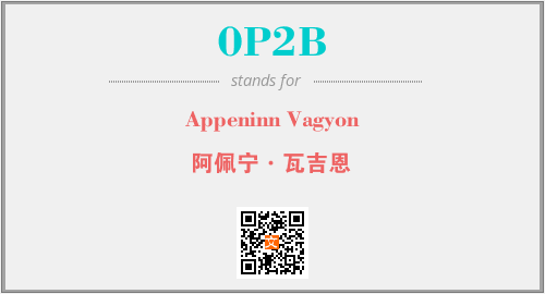 上述内容是“Appeninn Vagyon”作为“0P2B”的缩写,解释为“阿佩宁·瓦吉恩”时的信息,以及英文缩略词0P2B所代表的英文单词,其对应的中文拼音、详细解释以及在英文中的流行度和相关分类、应用领域及应用示例等。