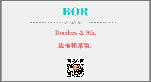 上述内容是“Borders & Sth.”作为“BOR”的缩写,解释为“边框和某物。”时的信息,以及英文缩略词BOR所代表的英文单词,其对应的中文拼音、详细解释以及在英文中的流行度和相关分类、应用领域及应用示例等。