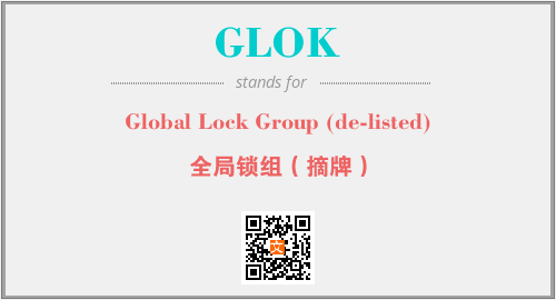 上述内容是“Global Lock Group (de-listed)”作为“GLOK”的缩写,解释为“全局锁组(摘牌)”时的信息,以及英文缩略词GLOK所代表的英文单词,其对应的中文拼音、详细解释以及在英文中的流行度和相关分类、应用领域及应用示例等。