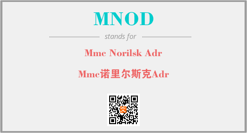上述内容是“Mmc Norilsk Adr”作为“MNOD”的缩写,解释为“Mmc诺里尔斯克Adr”时的信息,以及英文缩略词MNOD所代表的英文单词,其对应的中文拼音、详细解释以及在英文中的流行度和相关分类、应用领域及应用示例等。