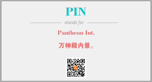 上述内容是“Pantheon Int.”作为“PIN”的缩写,解释为“万神殿内景。”时的信息,以及英文缩略词PIN所代表的英文单词,其对应的中文拼音、详细解释以及在英文中的流行度和相关分类、应用领域及应用示例等。
