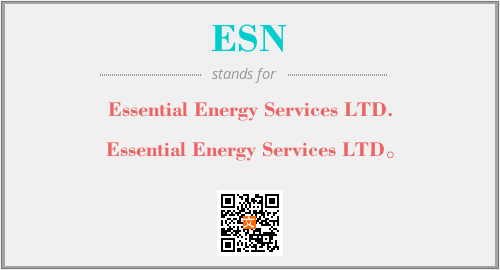 上述内容是“Essential Energy Services LTD.”作为“ESN”的缩写,解释为“Essential Energy Services LTD。”时的信息,以及英文缩略词ESN所代表的英文单词,其对应的中文拼音、详细解释以及在英文中的流行度和相关分类、应用领域及应用示例等。