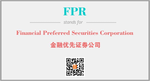 以上为Financial Preferred Securities Corporation英文缩略词FPR的中文解释,以及该英文缩写在英语的流行度、分类和应用领域方面的信息。