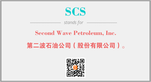 上述内容是“Second Wave Petroleum, Inc.”作为“SCS”的缩写,解释为“第二波石油公司(股份有限公司)。”时的信息,以及英文缩略词SCS所代表的英文单词,其对应的中文拼音、详细解释以及在英文中的流行度和相关分类、应用领域及应用示例等。
