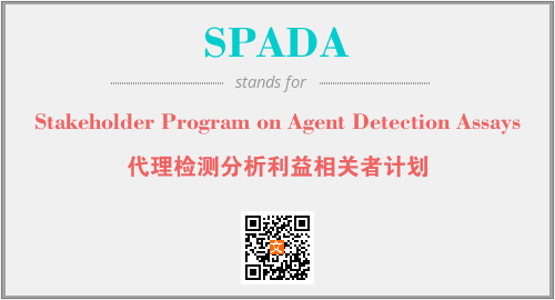 上述内容是“Stakeholder Program on Agent Detection Assays”作为“SPADA”的缩写,解释为“代理检测分析利益相关者计划”时的信息,以及英文缩略词SPADA所代表的英文单词,其对应的中文拼音、详细解释以及在英文中的流行度和相关分类、应用领域及应用示例等。