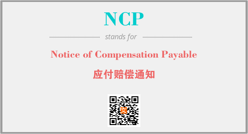 上述内容是“Notice of Compensation Payable”作为“NCP”的缩写,解释为“应付赔偿通知”时的信息,以及英文缩略词NCP所代表的英文单词,其对应的中文拼音、详细解释以及在英文中的流行度和相关分类、应用领域及应用示例等。
