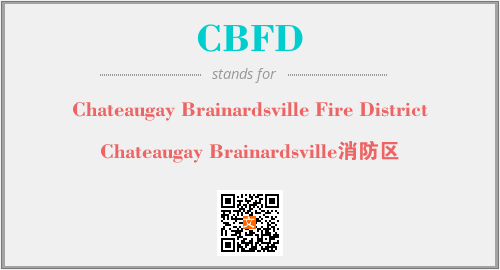 上述内容是“Chateaugay Brainardsville Fire District”作为“CBFD”的缩写,解释为“Chateaugay Brainardsville消防区”时的信息,以及英文缩略词CBFD所代表的英文单词,其对应的中文拼音、详细解释以及在英文中的流行度和相关分类、应用领域及应用示例等。