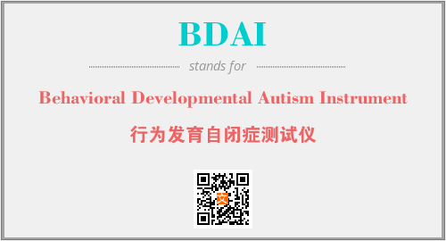 上述内容是“Behavioral Developmental Autism Instrument”作为“BDAI”的缩写,解释为“行为发育自闭症测试仪”时的信息,以及英文缩略词BDAI所代表的英文单词,其对应的中文拼音、详细解释以及在英文中的流行度和相关分类、应用领域及应用示例等。