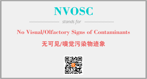 上述内容是“No Visual/Olfactory Signs of Contaminants”作为“NVOSC”的缩写,解释为“无可见/嗅觉污染物迹象”时的信息,以及英文缩略词NVOSC所代表的英文单词,其对应的中文拼音、详细解释以及在英文中的流行度和相关分类、应用领域及应用示例等。