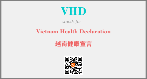 英文缩略词“VHD”经常作为“Vietnam Health Declaration”的英文缩写来使用,中文表示:“越南健康宣言”。本文将详细介绍英文缩写词VHD所代表英文单词,其对应的中文拼音、详细解释以及在英语中的流行度。此外,还有关于缩略词VHD的分类、应用领域及相关应用示例等。