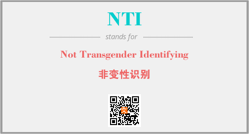 上述内容是“Not Transgender Identifying”作为“NTI”的缩写,解释为“非变性识别”时的信息,以及英文缩略词NTI所代表的英文单词,其对应的中文拼音、详细解释以及在英文中的流行度和相关分类、应用领域及应用示例等。