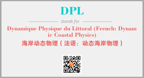 上述内容是“Dynamique Physique du Littoral (French: Dynamic Coastal Physics)”作为“DPL”的缩写,解释为“海岸动态物理(法语:动态海岸物理)”时的信息,以及英文缩略词DPL所代表的英文单词,其对应的中文拼音、详细解释以及在英文中的流行度和相关分类、应用领域及应用示例等。
