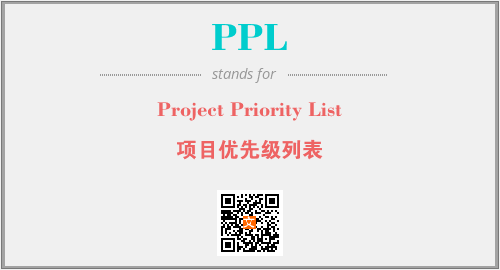 上述内容是“Project Priority List”作为“PPL”的缩写,解释为“项目优先级列表”时的信息,以及英文缩略词PPL所代表的英文单词,其对应的中文拼音、详细解释以及在英文中的流行度和相关分类、应用领域及应用示例等。