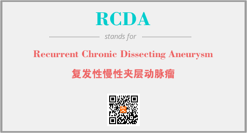上述内容是“Recurrent Chronic Dissecting Aneurysm”作为“RCDA”的缩写,解释为“复发性慢性夹层动脉瘤”时的信息,以及英文缩略词RCDA所代表的英文单词,其对应的中文拼音、详细解释以及在英文中的流行度和相关分类、应用领域及应用示例等。