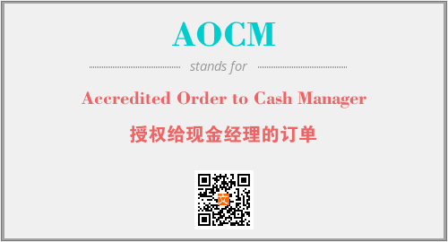 上述内容是“Accredited Order to Cash Manager”作为“AOCM”的缩写,解释为“授权给现金经理的订单”时的信息,以及英文缩略词AOCM所代表的英文单词,其对应的中文拼音、详细解释以及在英文中的流行度和相关分类、应用领域及应用示例等。