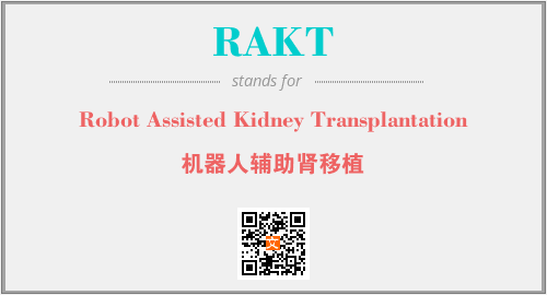 上述内容是“Robot Assisted Kidney Transplantation”作为“RAKT”的缩写,解释为“机器人辅助肾移植”时的信息,以及英文缩略词RAKT所代表的英文单词,其对应的中文拼音、详细解释以及在英文中的流行度和相关分类、应用领域及应用示例等。