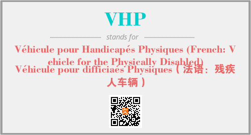 以上为Véhicule pour Handicapés Physiques (French: Vehicle for the Physically Disabled)英文缩略词VHP的中文解释,以及该英文缩写在英语的流行度、分类和应用领域方面的信息。