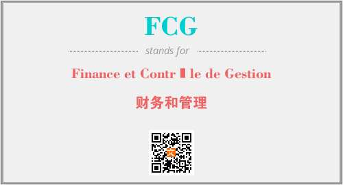 上述内容是“Finance et Contrôle de Gestion”作为“FCG”的缩写,解释为“财务和管理”时的信息,以及英文缩略词FCG所代表的英文单词,其对应的中文拼音、详细解释以及在英文中的流行度和相关分类、应用领域及应用示例等。