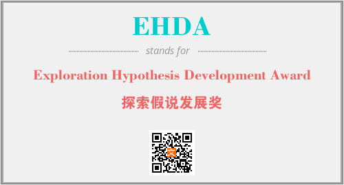 上述内容是“Exploration Hypothesis Development Award”作为“EHDA”的缩写,解释为“探索假说发展奖”时的信息,以及英文缩略词EHDA所代表的英文单词,其对应的中文拼音、详细解释以及在英文中的流行度和相关分类、应用领域及应用示例等。
