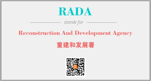 上述内容是“Reconstruction And Development Agency”作为“RADA”的缩写,解释为“重建和发展署”时的信息,以及英文缩略词RADA所代表的英文单词,其对应的中文拼音、详细解释以及在英文中的流行度和相关分类、应用领域及应用示例等。