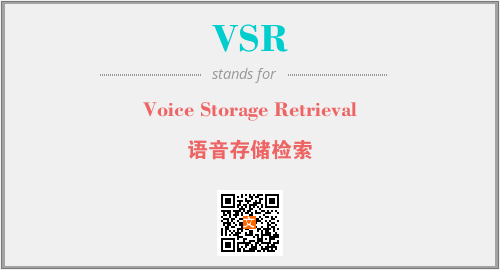 英文缩略词“VSR”经常作为“Voice Storage Retrieval”的英文缩写来使用,中文表示:“语音存储检索”。本文将详细介绍英文缩写词VSR所代表英文单词,其对应的中文拼音、详细解释以及在英语中的流行度。此外,还有关于缩略词VSR的分类、应用领域及相关应用示例等。