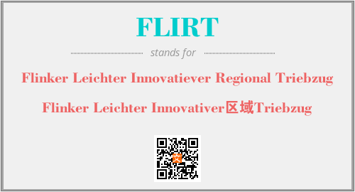 上述内容是“Flinker Leichter Innovatiever Regional Triebzug”作为“FLIRT”的缩写,解释为“Flinker Leichter Innovativer区域Triebzug”时的信息,以及英文缩略词FLIRT所代表的英文单词,其对应的中文拼音、详细解释以及在英文中的流行度和相关分类、应用领域及应用示例等。