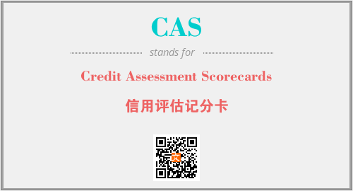 英文缩略词“CAS”经常作为“Credit Assessment Scorecards”的英文缩写来使用,中文表示:“信用评估记分卡”。本文将详细介绍英文缩写词CAS所代表英文单词,其对应的中文拼音、详细解释以及在英语中的流行度。此外,还有关于缩略词CAS的分类、应用领域及相关应用示例等。