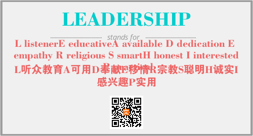 "LEADERSHIP - L听众教育A可用D奉献E移情R宗教S聪明H诚实I感兴趣P实用 ." [引用日期]. <https://www.suoxie123.com/a/63746.html>.