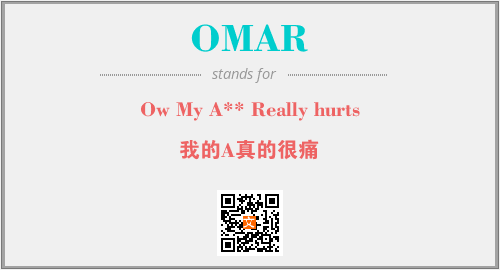 以上为Ow My A** Really hurts英文缩略词OMAR的中文解释,以及该英文缩写在英语的流行度、分类和应用领域方面的信息。