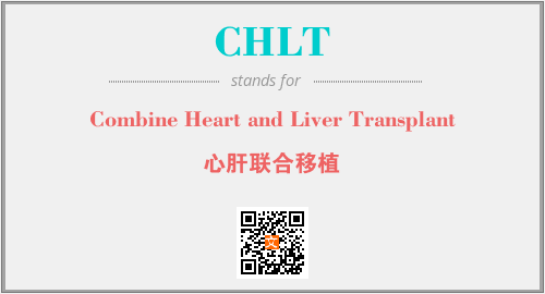 上述内容是“Combine Heart and Liver Transplant”作为“CHLT”的缩写,解释为“心肝联合移植”时的信息,以及英文缩略词CHLT所代表的英文单词,其对应的中文拼音、详细解释以及在英文中的流行度和相关分类、应用领域及应用示例等。