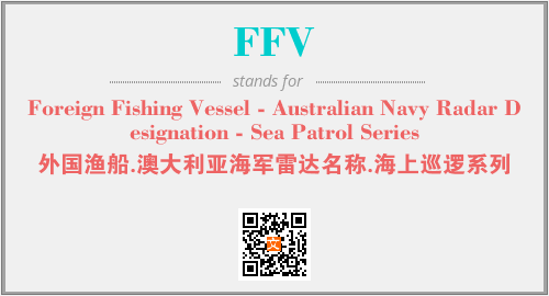 上述内容是“Foreign Fishing Vessel - Australian Navy Radar Designation - Sea Patrol Series”作为“FFV”的缩写,解释为“外国渔船.澳大利亚海军雷达名称.海上巡逻系列”时的信息,以及英文缩略词FFV所代表的英文单词,其对应的中文拼音、详细解释以及在英文中的流行度和相关分类、应用领域及应用示例等。