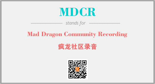 英文缩略词“MDCR”经常作为“Mad Dragon Community Recording”的英文缩写来使用,中文表示:“疯龙社区录音”。本文将详细介绍英文缩写词MDCR所代表英文单词,其对应的中文拼音、详细解释以及在英语中的流行度。此外,还有关于缩略词MDCR的分类、应用领域及相关应用示例等。