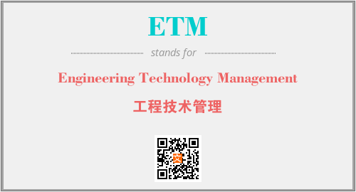 上述内容是“Engineering Technology Management”作为“ETM”的缩写,解释为“工程技术管理”时的信息,以及英文缩略词ETM所代表的英文单词,其对应的中文拼音、详细解释以及在英文中的流行度和相关分类、应用领域及应用示例等。