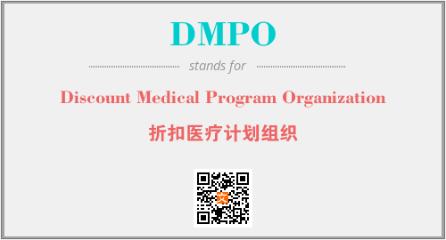 上述内容是“Discount Medical Program Organization”作为“DMPO”的缩写,解释为“折扣医疗计划组织”时的信息,以及英文缩略词DMPO所代表的英文单词,其对应的中文拼音、详细解释以及在英文中的流行度和相关分类、应用领域及应用示例等。