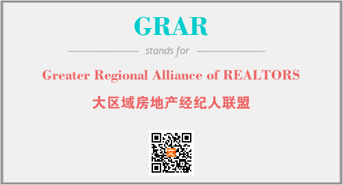 上述内容是“Greater Regional Alliance of REALTORS”作为“GRAR”的缩写,解释为“大区域房地产经纪人联盟”时的信息,以及英文缩略词GRAR所代表的英文单词,其对应的中文拼音、详细解释以及在英文中的流行度和相关分类、应用领域及应用示例等。