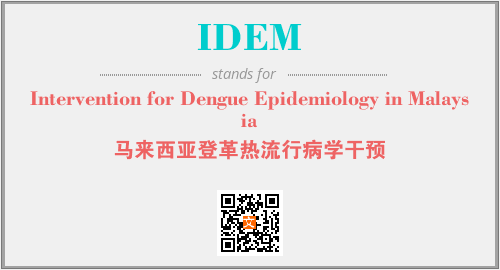 上述内容是“Intervention for Dengue Epidemiology in Malaysia”作为“IDEM”的缩写,解释为“马来西亚登革热流行病学干预”时的信息,以及英文缩略词IDEM所代表的英文单词,其对应的中文拼音、详细解释以及在英文中的流行度和相关分类、应用领域及应用示例等。
