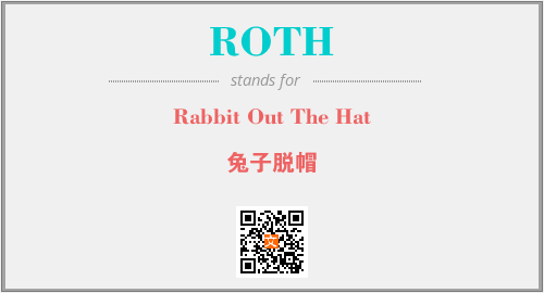上述内容是“Rabbit Out The Hat”作为“ROTH”的缩写,解释为“兔子脱帽”时的信息,以及英文缩略词ROTH所代表的英文单词,其对应的中文拼音、详细解释以及在英文中的流行度和相关分类、应用领域及应用示例等。