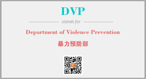 上述内容是“Department of Violence Prevention”作为“DVP”的缩写,解释为“暴力预防部”时的信息,以及英文缩略词DVP所代表的英文单词,其对应的中文拼音、详细解释以及在英文中的流行度和相关分类、应用领域及应用示例等。
