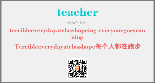 上述内容是“terribleeverydayatclasshopeing everyonegoesrunning”作为“teacher”的缩写,解释为“Terribleeverydayatclasshope每个人都在跑步”时的信息,以及英文缩略词teacher所代表的英文单词,其对应的中文拼音、详细解释以及在英文中的流行度和相关分类、应用领域及应用示例等。